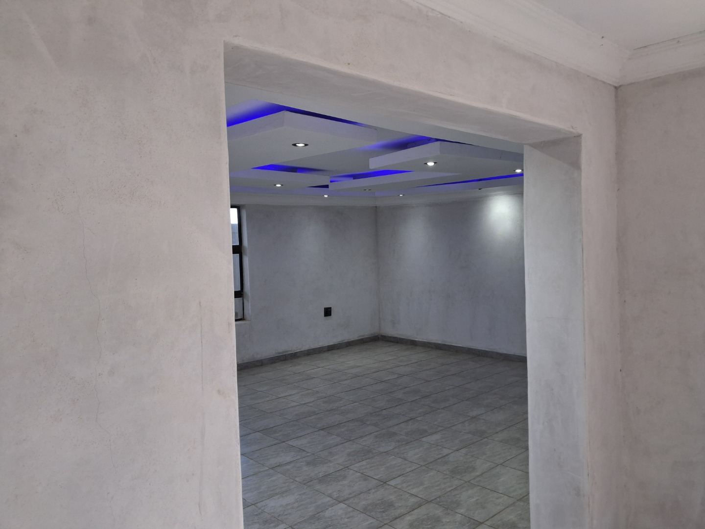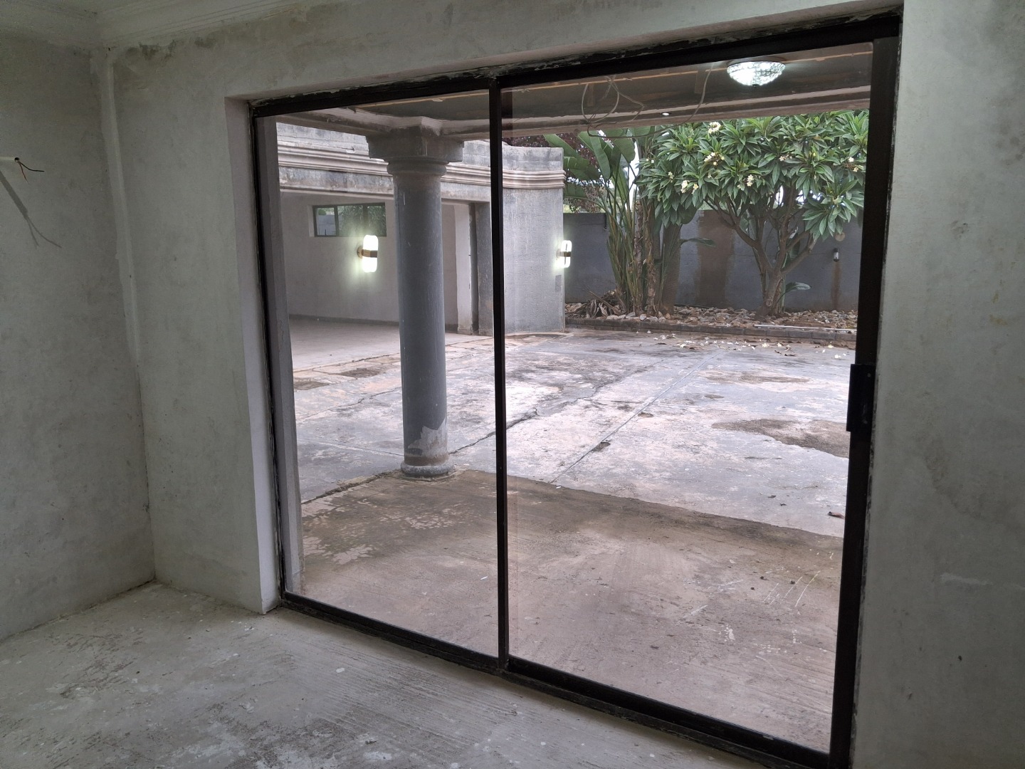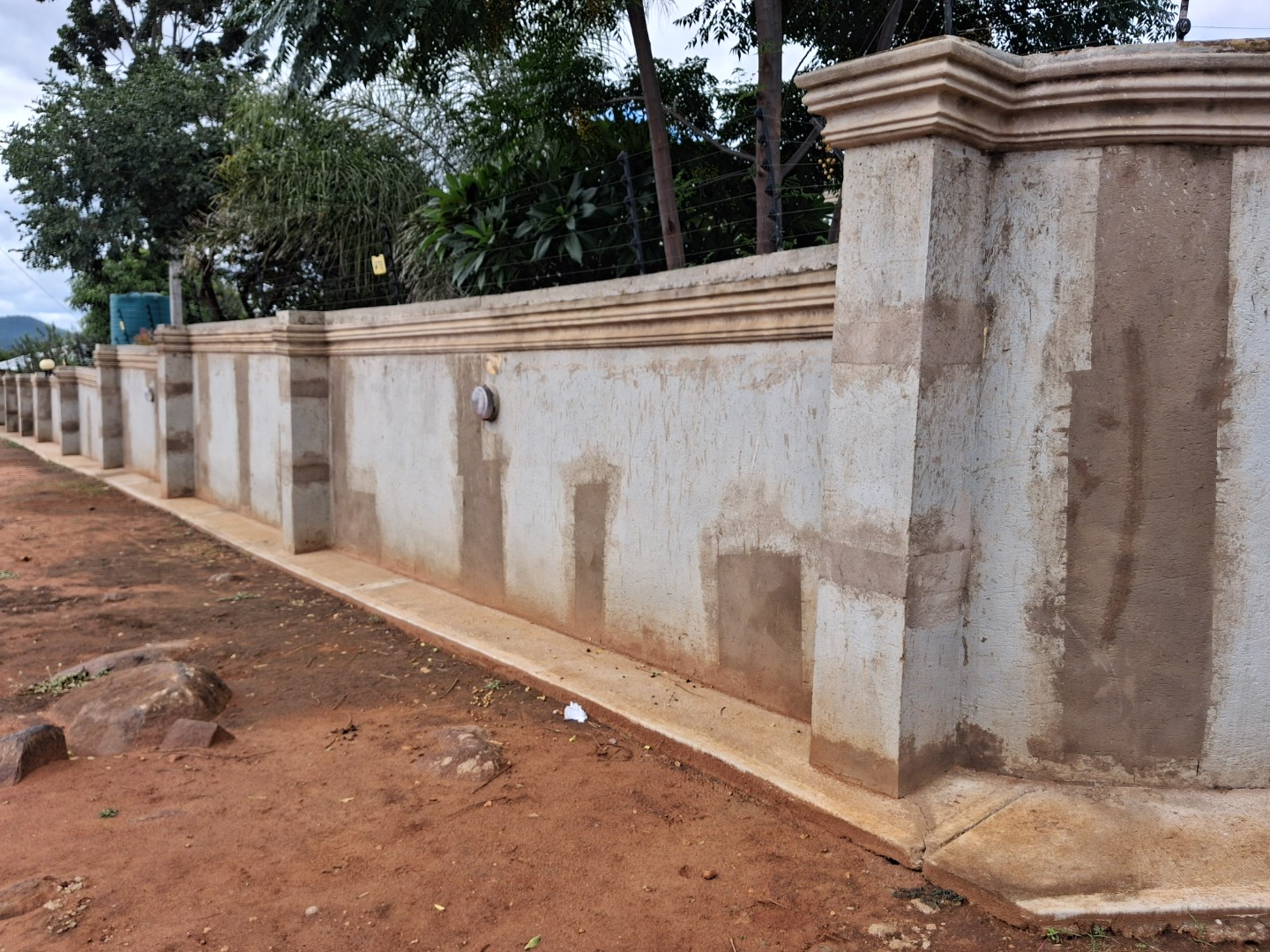 The first floor has 2 en-suites bedrooms, living area and braai area. The property has a swimming pool which also needs some repairs and renovations, small Lapa with braai area (entertainment area), storeroom, borehole and 2500 Liters Jojo tank. The property is secured with wall fence, electric fence and motor gate.