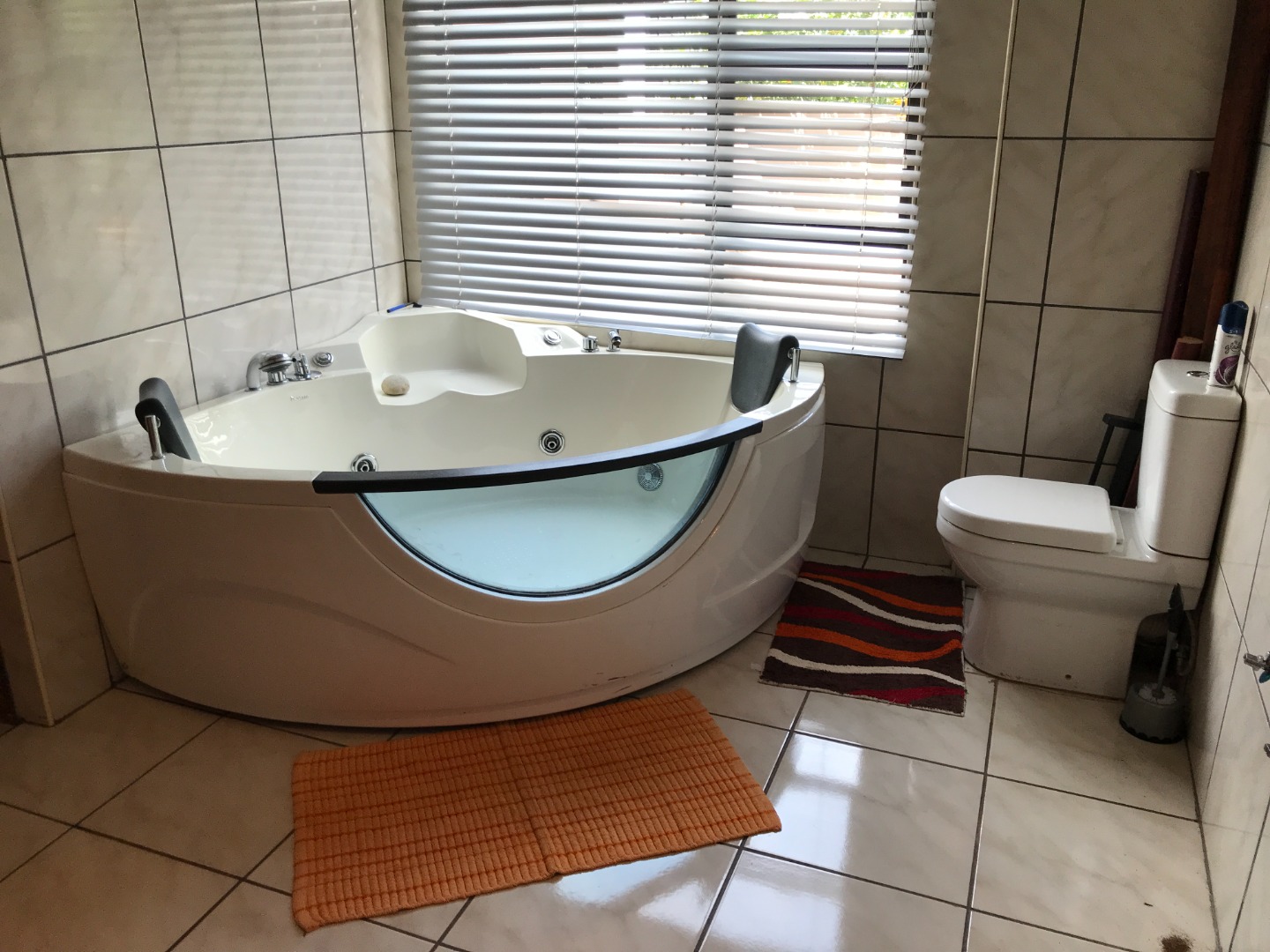 This gorgeous gem has 5 spacious bedrooms of which 4 has en-suite bathrooms, an extra guest bathroom, living areas both downstairs and upstairs, a study hall, beautiful modern kitchen with granite tops and a welcoming patio overlooking the pool.