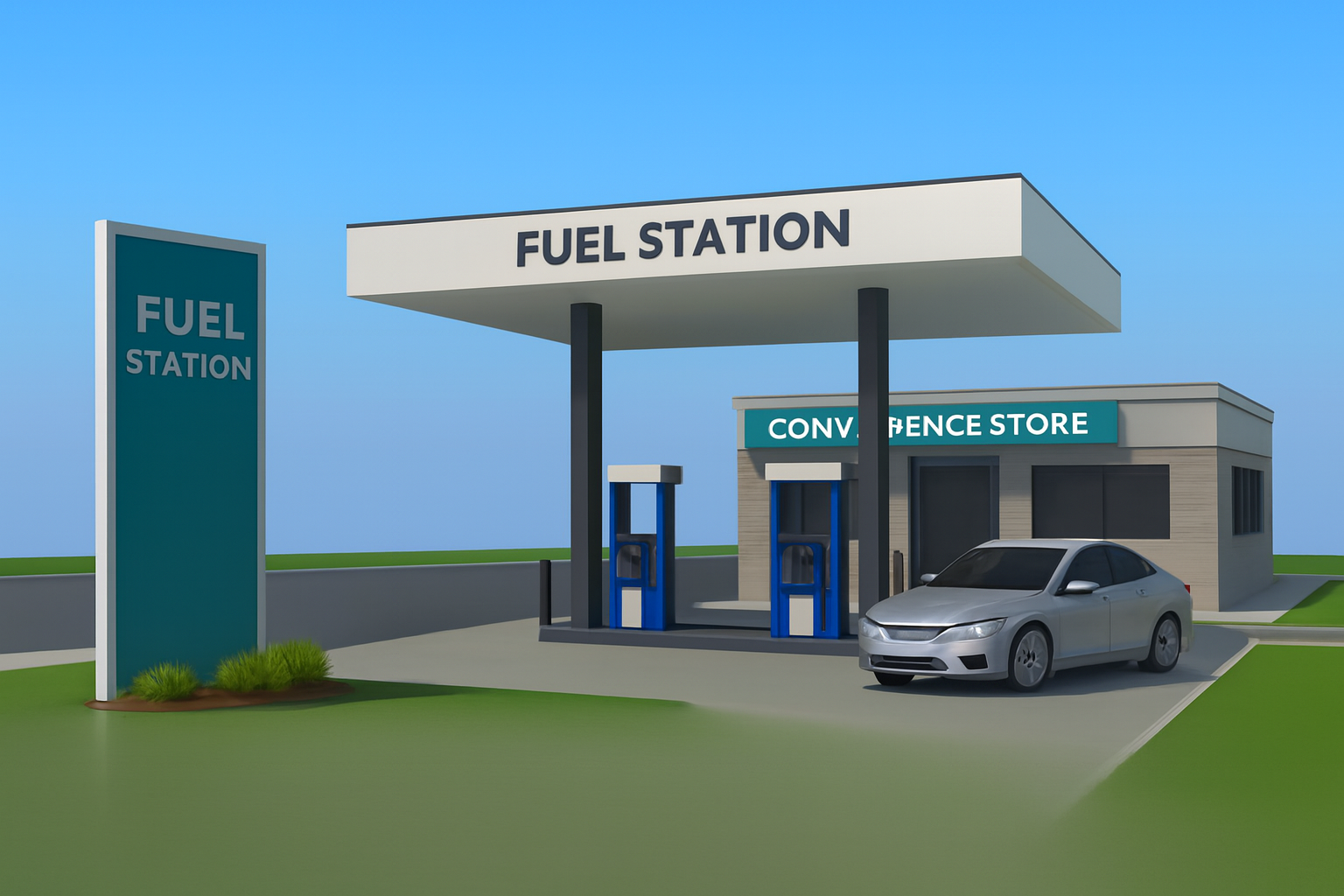 Zoning & Layout: Suitable for retail fuel, food service, and additional development