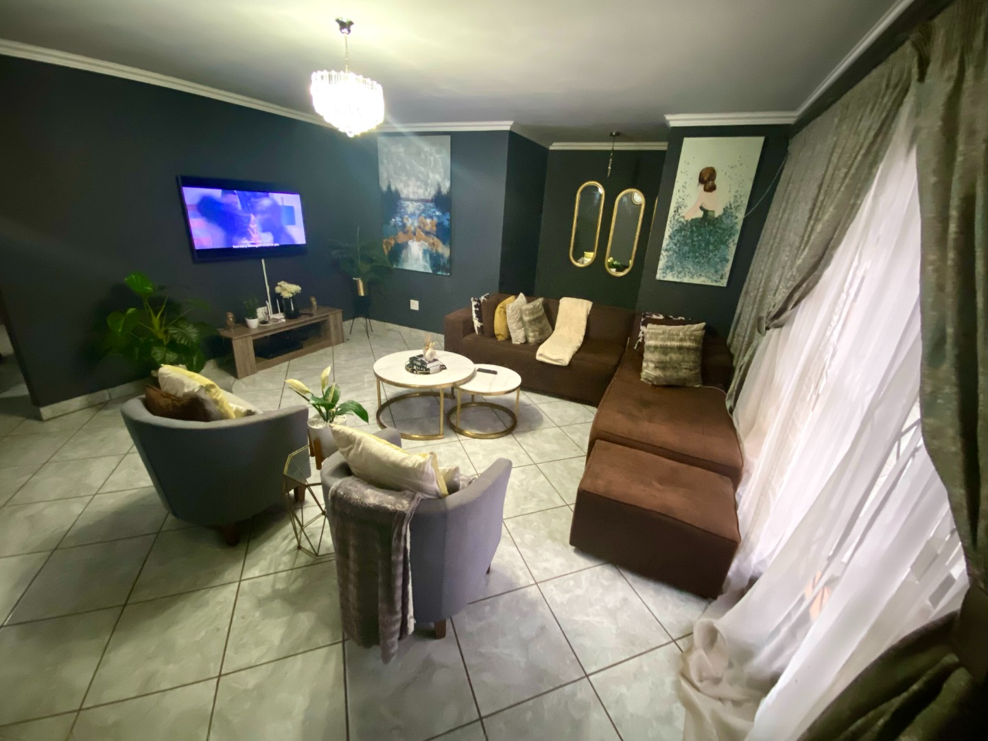 Step into a well-designed modern home that blends comfort with practicality. This 3-bedroom property offers a clean, contemporary layout ideal for both relaxed family living and easy entertaining. The 1.5 bathrooms are thoughtfully positioned to serve both residents and guests without hassle. Enjoy the convenience of a double garage, providing ample space for vehicles and extra storage. Security is a standout feature, with an electric gate and fully fenced perimeter, always giving you peace of mind and controlled access.