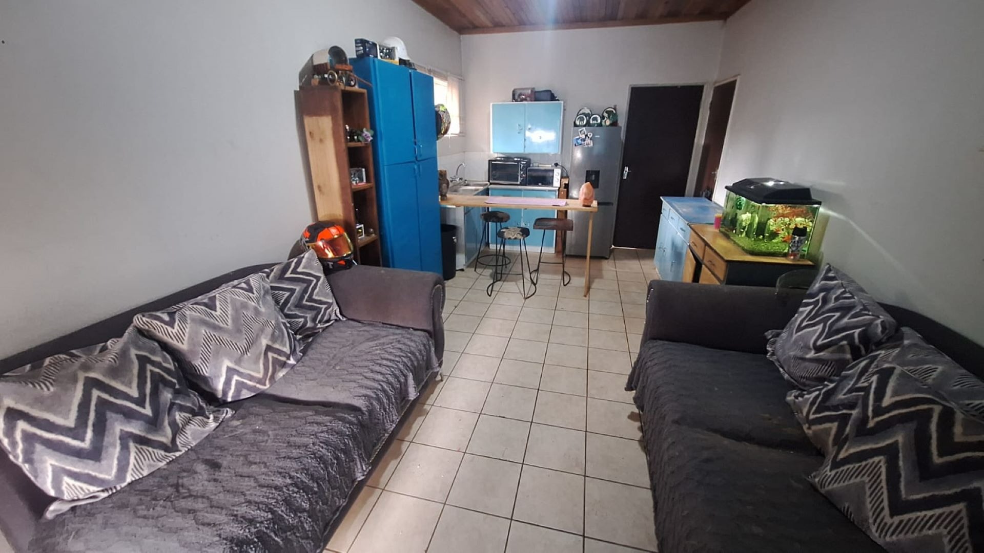 This neat 1-bedroom flat is situated on a shared property with a main house, offering a secure and relaxed living environment.