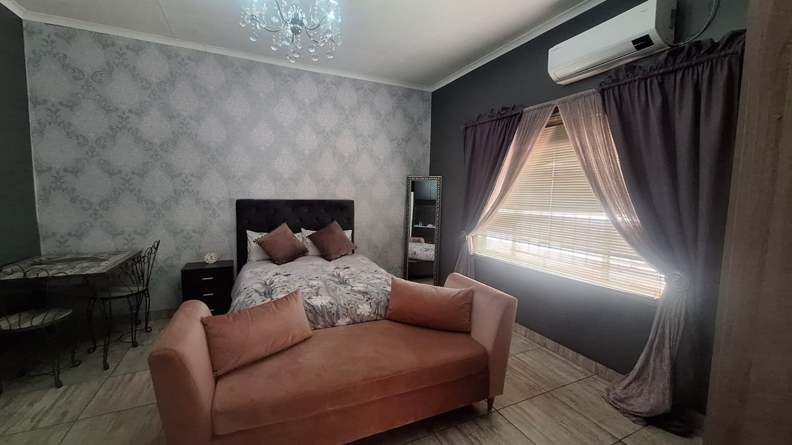 The main bedroom boasts an en-suite, while a separate toilet and shower accommodate family or guests. Each room has an air conditioner.