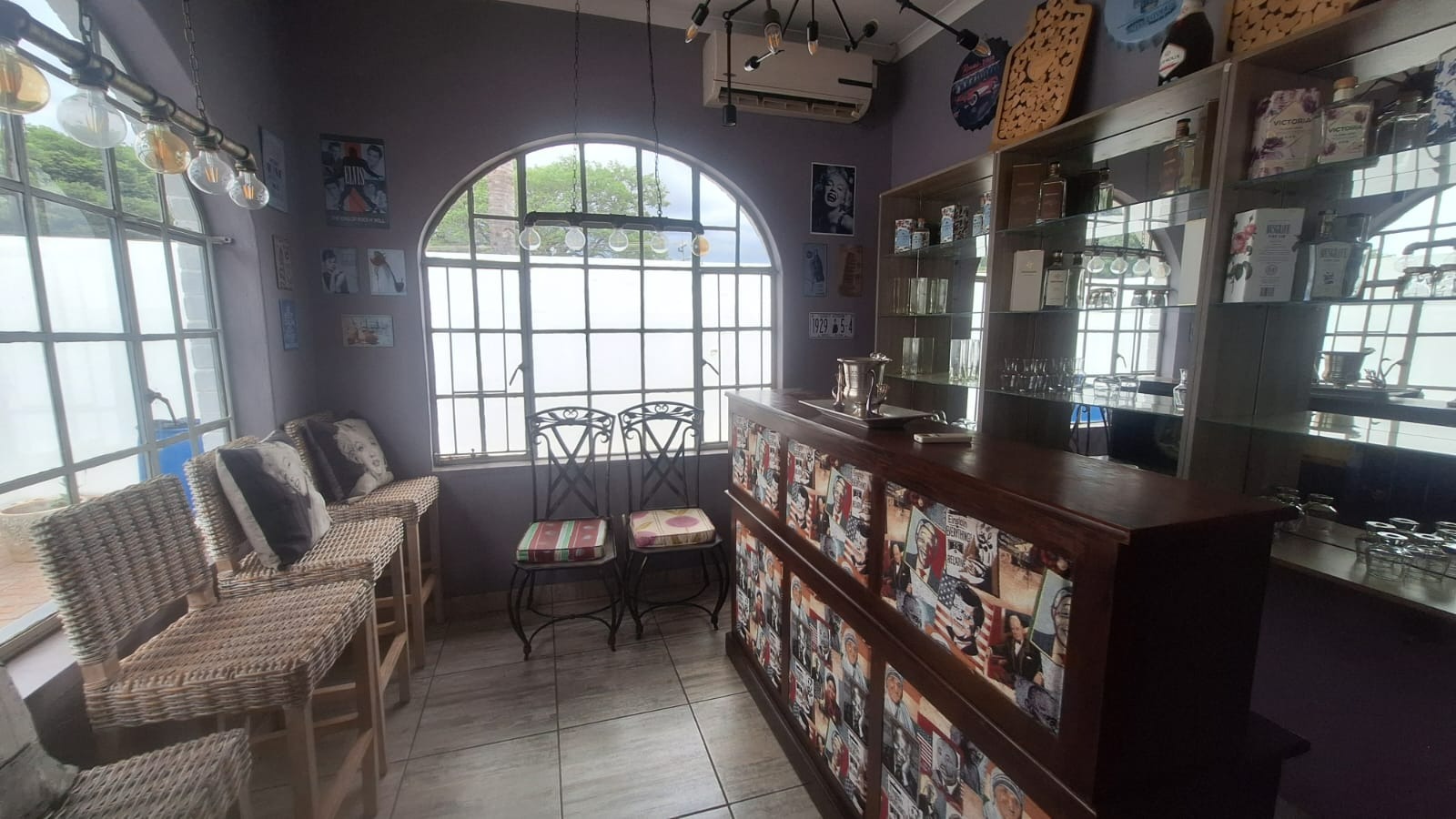 Enjoy open plan living with a stylish TV and dining room with an air conditioner, a practical kitchen, and a welcoming bar area.