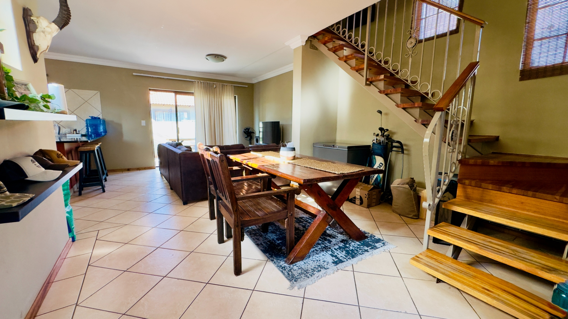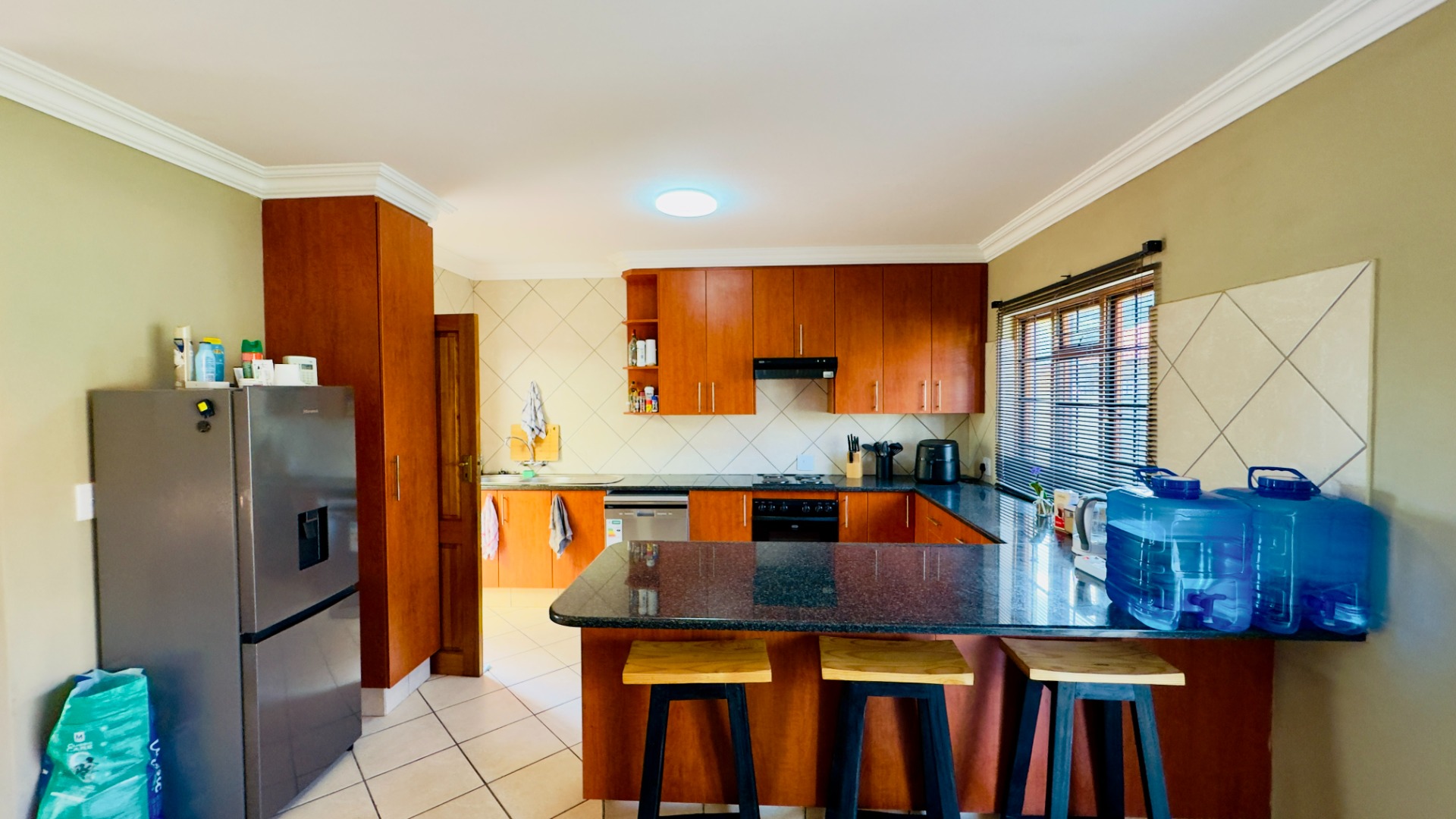 From the moment you enter, you’re welcomed by a seamless open-plan layout featuring a spacious lounge and dining area that flows effortlessly into a well-appointed kitchen, complete with granite countertops, an electric stove and oven, and a convenient breakfast nook.