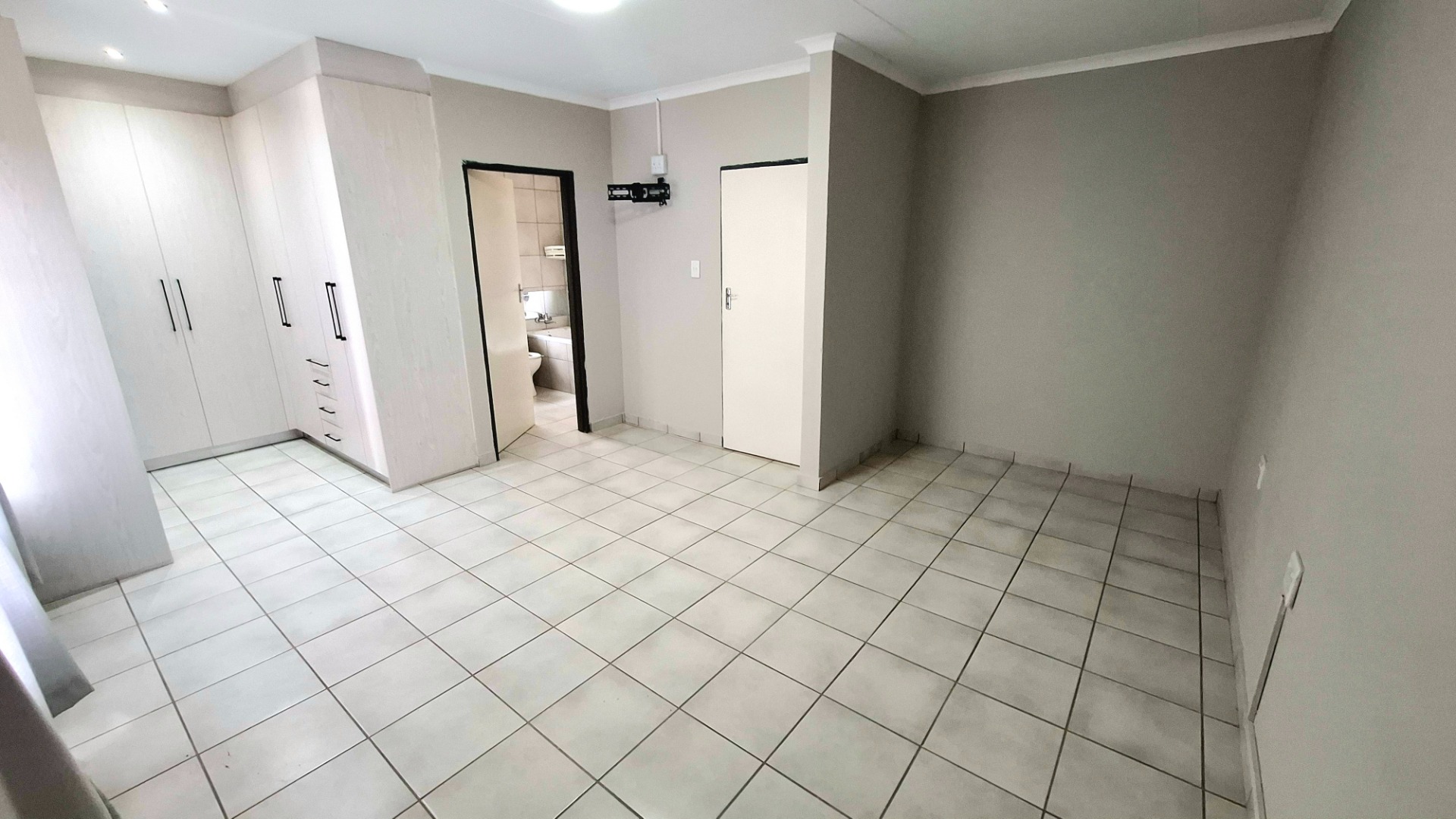 The accommodation comprises three comfortable bedrooms. The first bedroom includes an en-suite bathroom with a shower. The second bedroom is served by a guest bathroom fitted with a bathtub, located in the passage. The main bedroom is spacious and features a walk-in closet as well as a full en-suite bathroom.