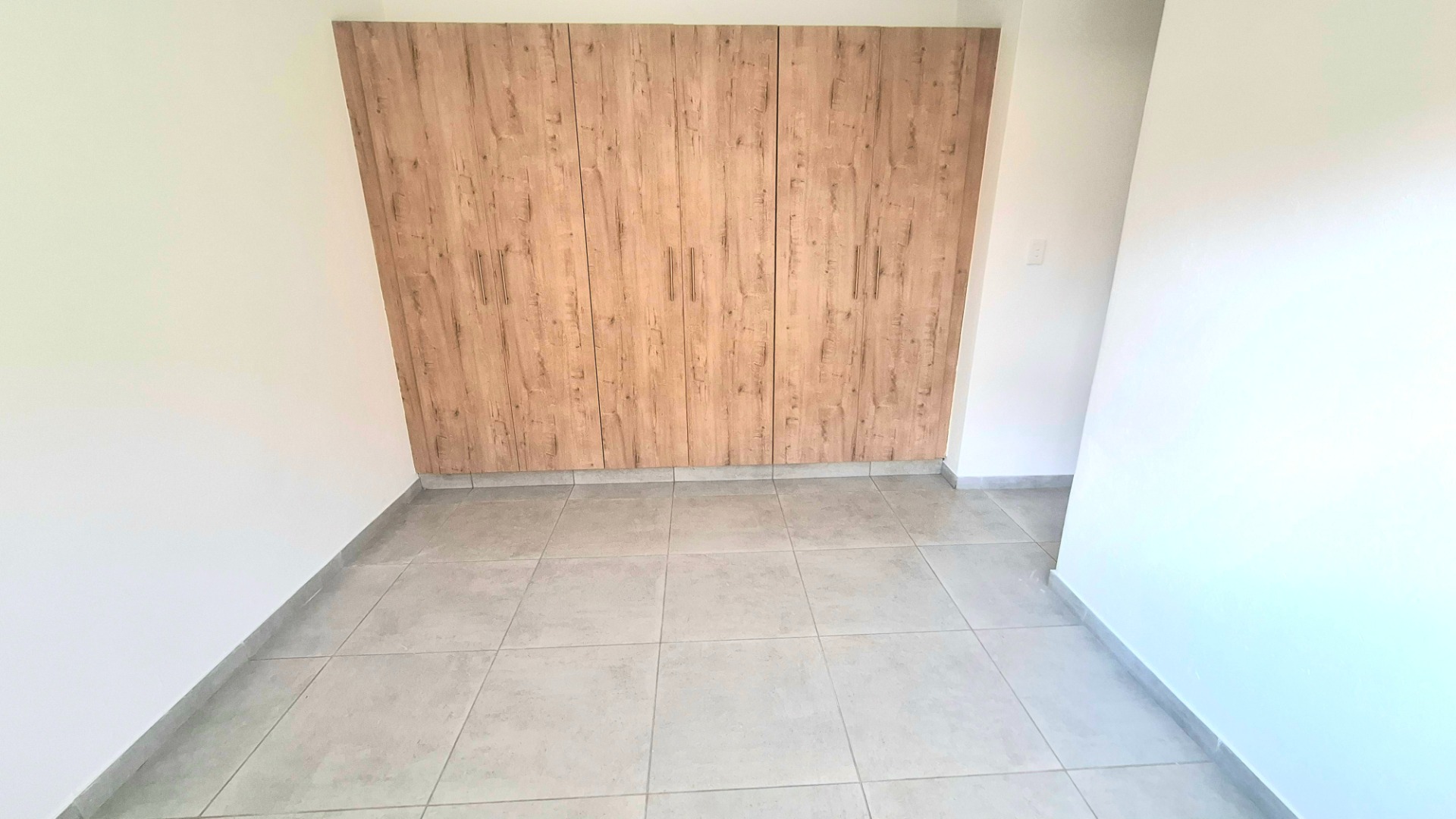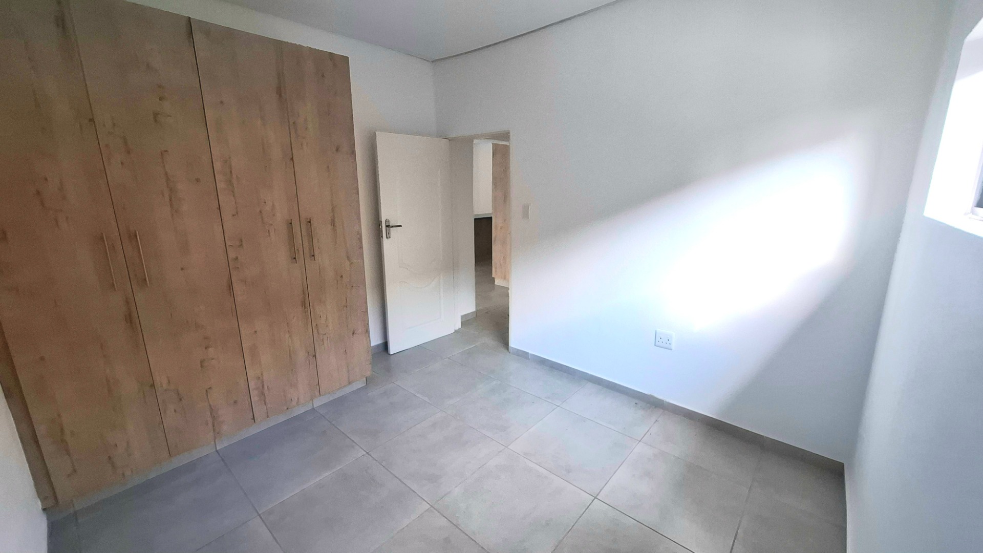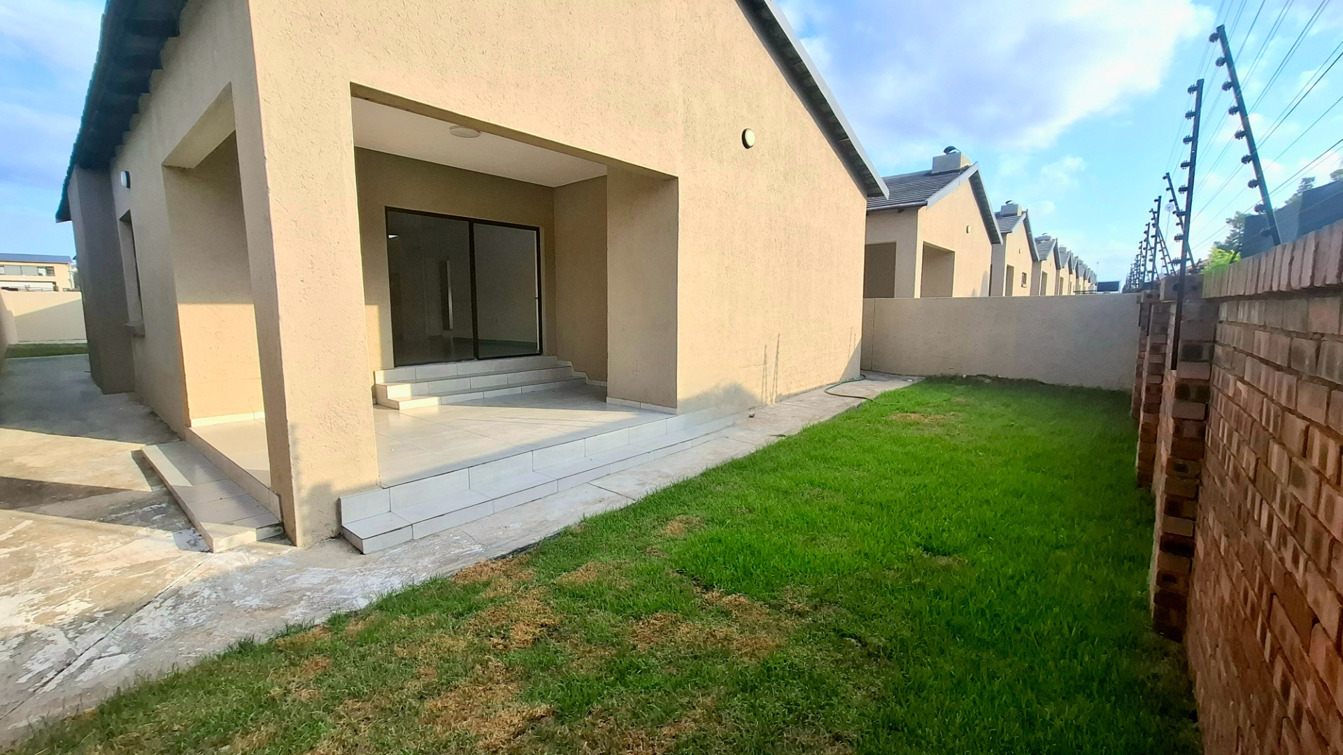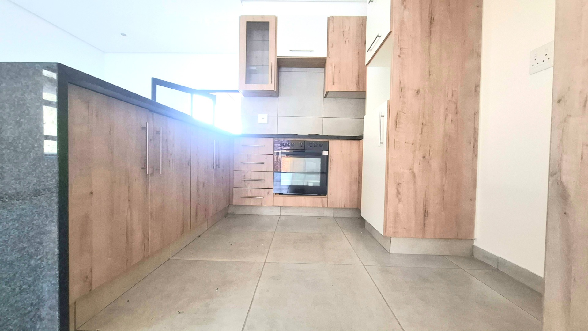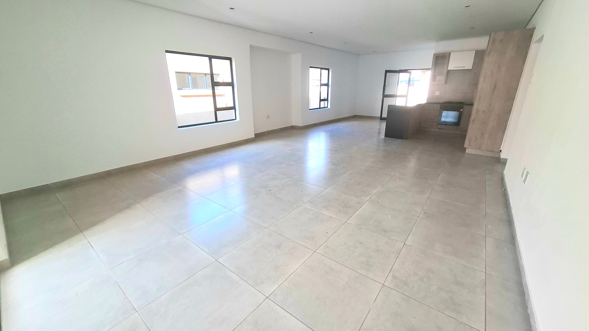 Upon entering, you are welcomed into a dining and kitchen area that flows effortlessly into a spacious living room, creating a cohesive and practical layout. The living area opens onto a patio with a built-in braai, ideal for entertaining or relaxing outdoors. A scullery near the entrance provides additional space for appliances and storage.