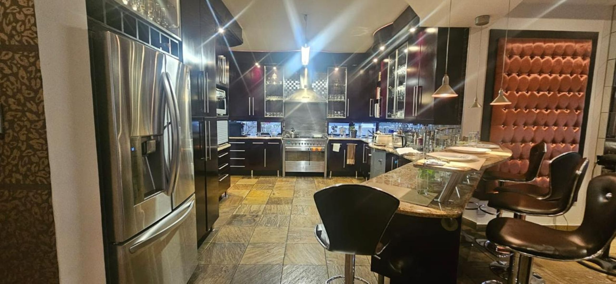 • Contemporary Kitchen – Features granite countertops, a gas stove/gas and electric oven, centre island, built-in bar or coffee nook, and a separate scullery.