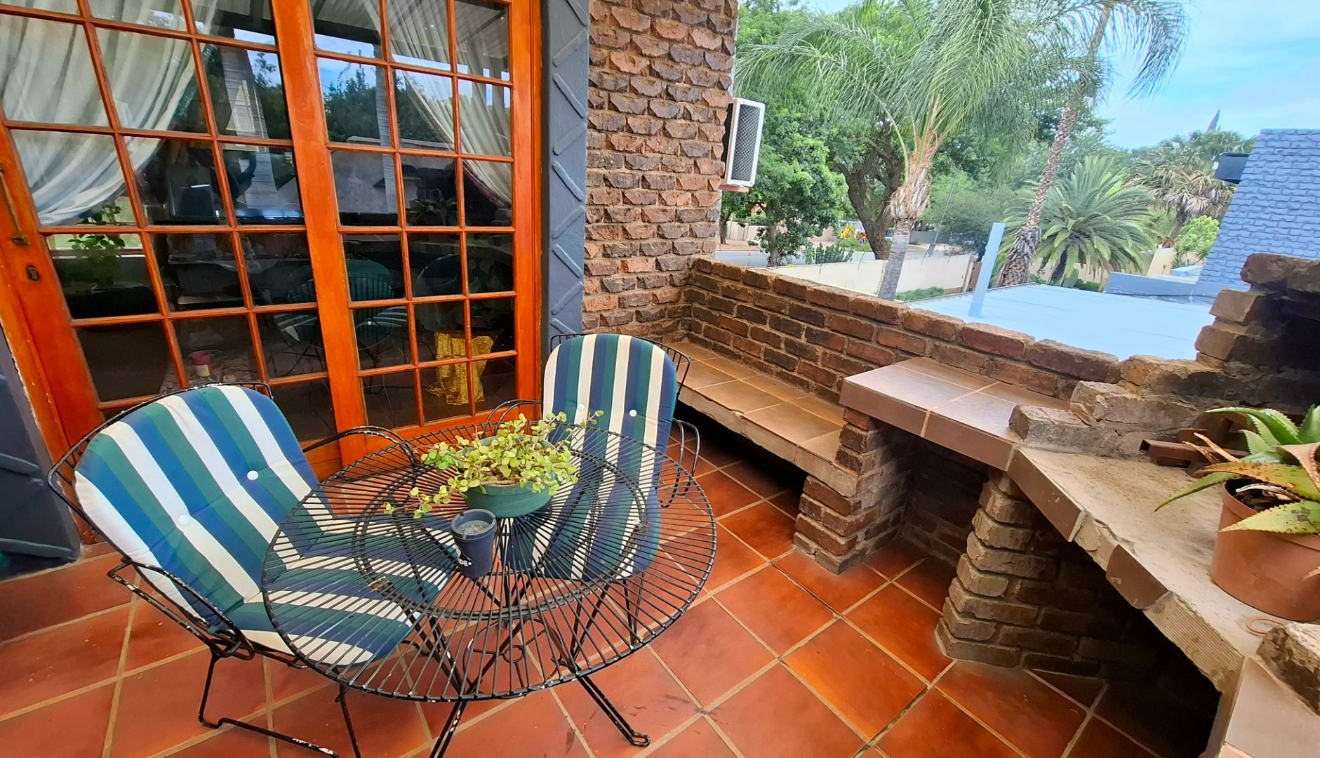 The kitchen area flows into a generously sized open-plan living and dining room, fitted with an air-conditioner to ensure year-round comfort. From the living area, step out onto a private balcony that offers a built-in braai area, ideal for entertaining or relaxing after a long day.