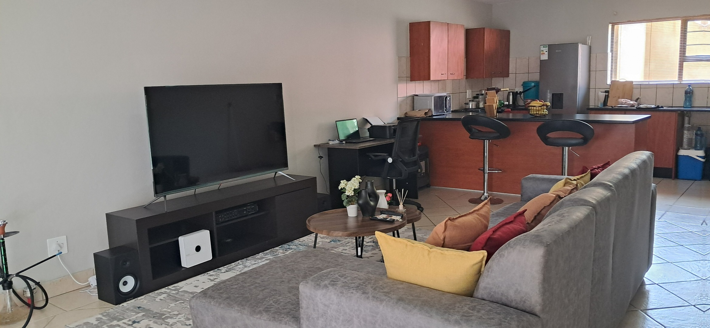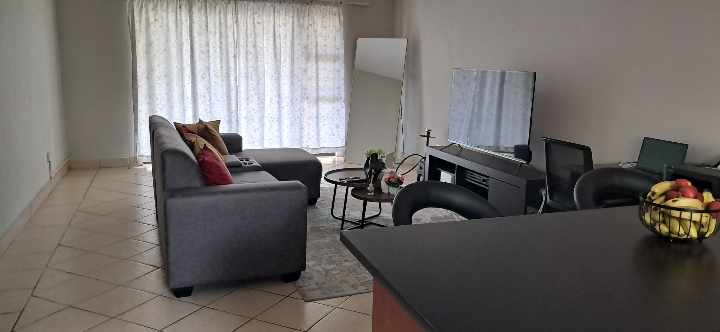 As you enter, you’re welcomed by an open-plan kitchen overlooking a spacious living area. The lounge features sliding doors that open onto a private patio and a well-maintained garden — perfect for unwinding after a long day.