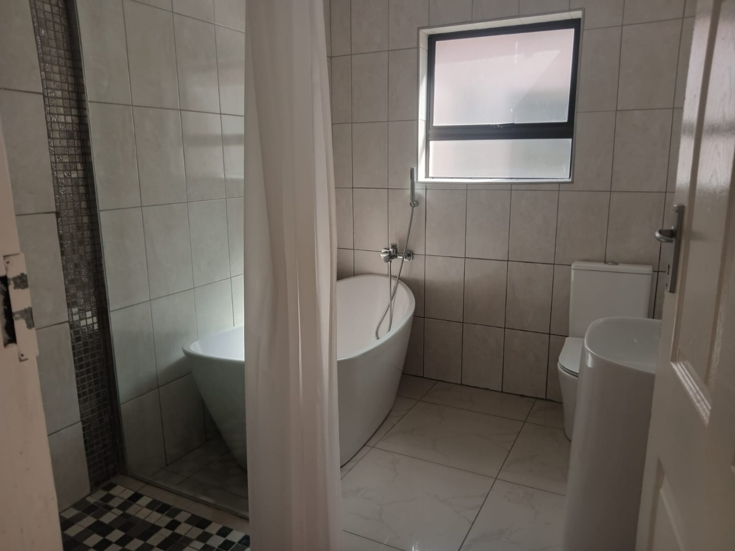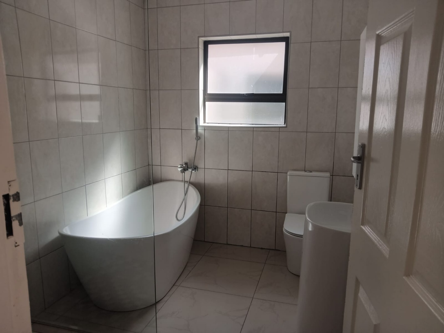 Contemporary bathrooms with modern fittings.