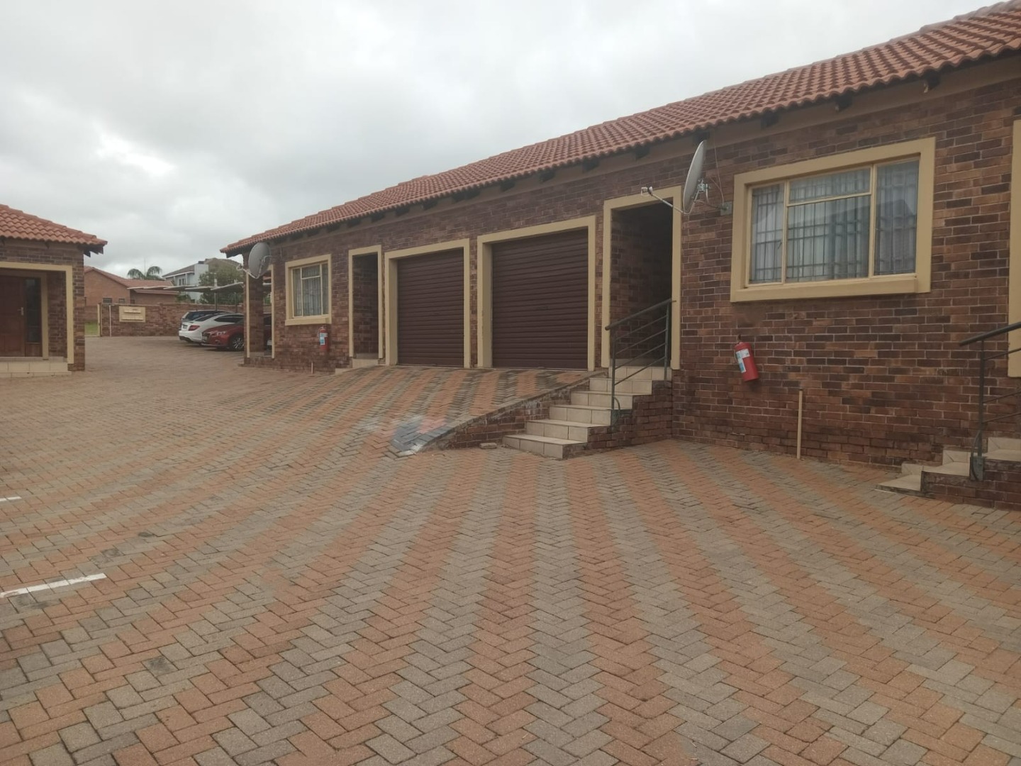 The property further boasts a spacious lounge that leads out to a private veranda, creating a perfect space for relaxation or entertaining. A single garage is included, and the estate offers electric fencing and security for added peace of mind. Electricity and water are prepaid.